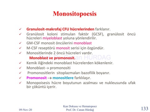 ✓ Monopoisesis hücre boyutunun azalması ve nukleusunda ufak