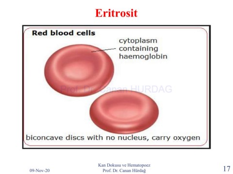 Eritrosit Prof. Dr. Canan HURDAG Kan Dokusu ve Hematopoez 09-Nov-20 Prof. Dr. Canan Hürdağ 17