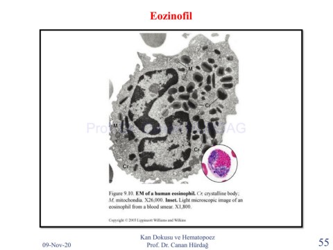 Eozinofil Prof. Dr. Canan HURDAG Kan Dokusu ve Hematopoez 09-Nov-20 Prof. Dr. Canan Hürdağ 55