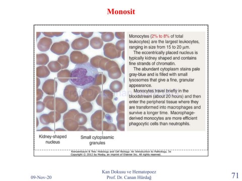 Monosit Prof. Dr. Canan HURDAG Kan Dokusu ve Hematopoez 09-Nov-20 Prof. Dr. Canan Hürdağ 71