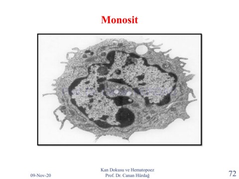 Monosit Prof. Dr. Canan HURDAG Kan Dokusu ve Hematopoez 09-Nov-20 Prof. Dr. Canan Hürdağ 72