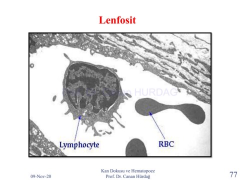 Lenfosit Prof. Dr. Canan HURDAG Kan Dokusu ve Hematopoez 09-Nov-20 Prof. Dr. Canan Hürdağ 77