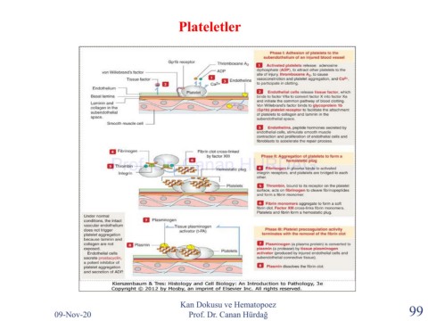 Plateletler Prof. Dr. Canan HURDAG Kan Dokusu ve Hematopoez 09-Nov-20 Prof. Dr. Canan Hürdağ 99