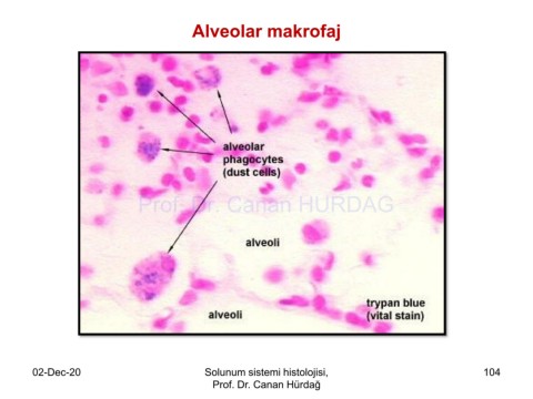 Alveolar makrofaj Prof. Dr. Canan HURDAG 02-Dec-20 Solunum sistemi histolojisi, 104 Prof. Dr. Canan Hürdağ