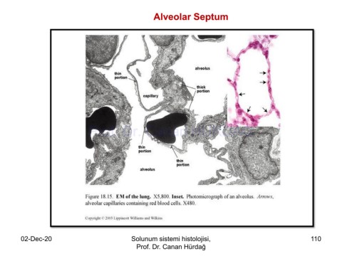 Alveolar Septum Prof. Dr. Canan HURDAG 02-Dec-20 Solunum sistemi histolojisi, 110 Prof. Dr. Canan Hürdağ