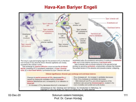 Hava-Kan Bariyer Engeli Prof. Dr. Canan HURDAG 02-Dec-20 Solunum sistemi histolojisi, 111 Prof. Dr. Canan Hürdağ