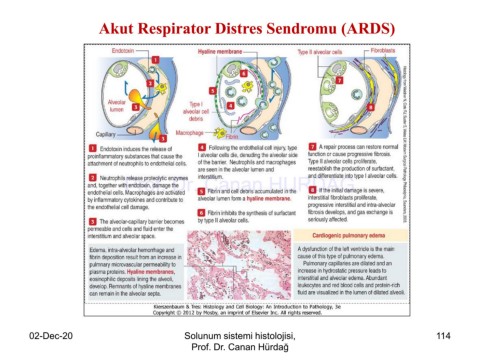 Akut Respirator Distres Sendromu (ARDS) Prof. Dr. Canan HURDAG 02-Dec-20 Solunum sistemi histolojisi, 114 Prof. Dr. Canan Hürdağ