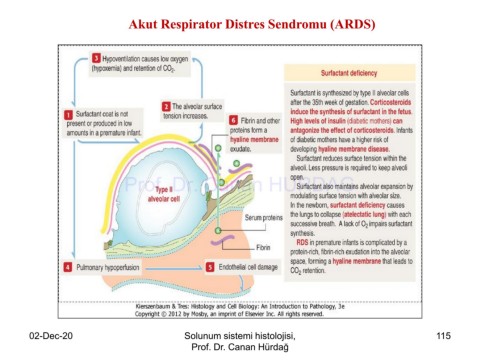 Akut Respirator Distres Sendromu (ARDS) Prof. Dr. Canan HURDAG 02-Dec-20 Solunum sistemi histolojisi, 115 Prof. Dr. Canan Hürdağ