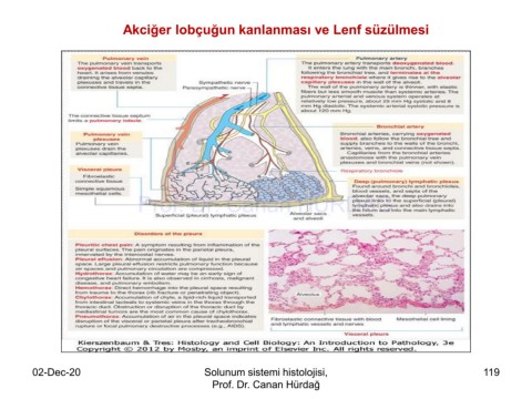 Akciğer lobçuğun kanlanması ve Lenf süzülmesi Prof. Dr. Canan HURDAG 02-Dec-20 Solunum sistemi histolojisi, 119 Prof. Dr. Canan Hürdağ