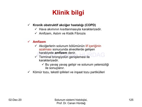 02-Dec-20 Solunum sistemi histolojisi, 125