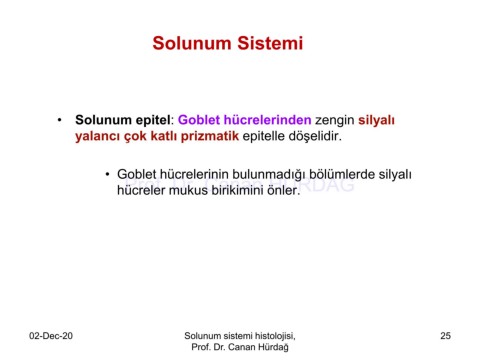 02-Dec-20 Solunum sistemi histolojisi, 25