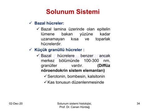 02-Dec-20 Solunum sistemi histolojisi, 34