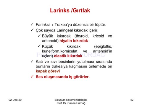 02-Dec-20 Solunum sistemi histolojisi, 42