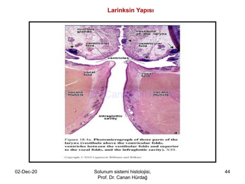 Larinksin Yapısı Prof. Dr. Canan HURDAG 02-Dec-20 Solunum sistemi histolojisi, 44 Prof. Dr. Canan Hürdağ