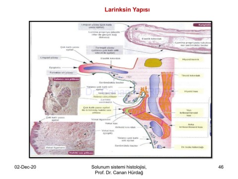Larinksin Yapısı Prof. Dr. Canan HURDAG 02-Dec-20 Solunum sistemi histolojisi, 46 Prof. Dr. Canan Hürdağ