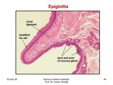 Epiglottis Prof. Dr. Canan HURDAG 02-Dec-20 Solunum sistemi histolojisi, 49 Prof. Dr. Canan Hürdağ
