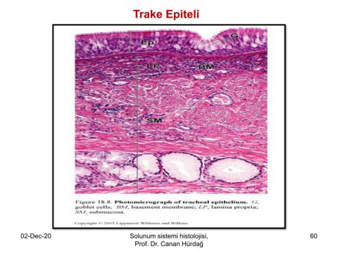 Trake Epiteli Prof. Dr. Canan HURDAG 02-Dec-20 Solunum sistemi histolojisi, 60 Prof. Dr. Canan Hürdağ