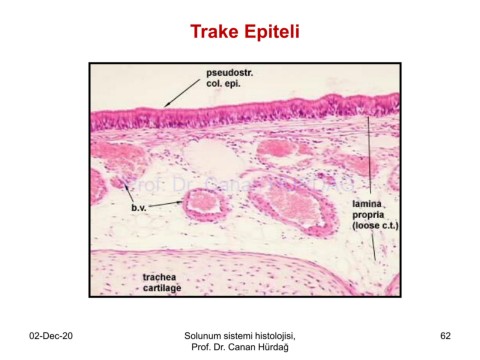 Trake Epiteli Prof. Dr. Canan HURDAG 02-Dec-20 Solunum sistemi histolojisi, 62 Prof. Dr. Canan Hürdağ