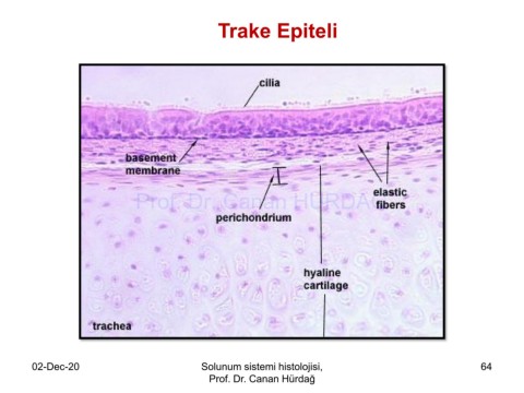 Trake Epiteli Prof. Dr. Canan HURDAG 02-Dec-20 Solunum sistemi histolojisi, 64 Prof. Dr. Canan Hürdağ