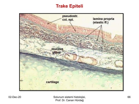 Trake Epiteli Prof. Dr. Canan HURDAG 02-Dec-20 Solunum sistemi histolojisi, 66 Prof. Dr. Canan Hürdağ