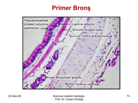Primer Bronş Prof. Dr. Canan HURDAG 02-Dec-20 Solunum sistemi histolojisi, 73 Prof. Dr. Canan Hürdağ