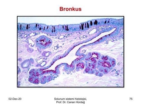 Bronkus Prof. Dr. Canan HURDAG 02-Dec-20 Solunum sistemi histolojisi, 75 Prof. Dr. Canan Hürdağ