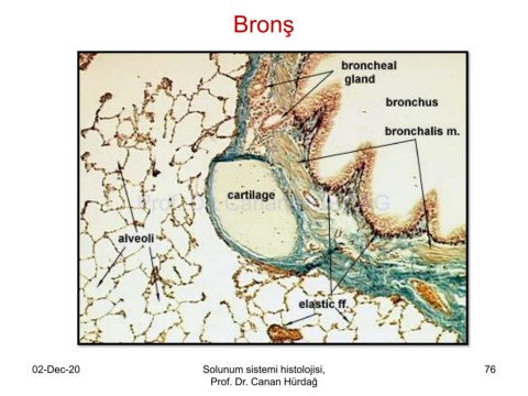 Bronş Prof. Dr. Canan HURDAG 02-Dec-20 Solunum sistemi histolojisi, 76 Prof. Dr. Canan Hürdağ