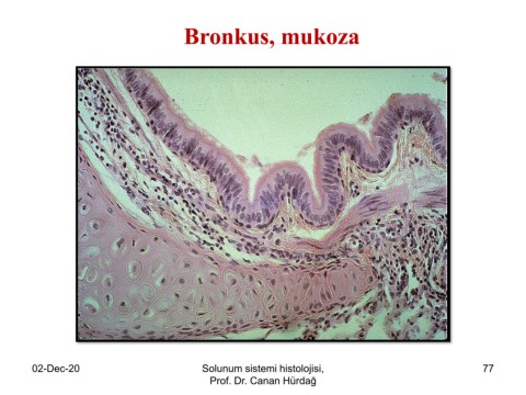 Bronkus, mukoza Prof. Dr. Canan HURDAG 02-Dec-20 Solunum sistemi histolojisi, 77 Prof. Dr. Canan Hürdağ