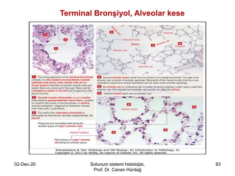 Terminal Bronşiyol, Alveolar kese Prof. Dr. Canan HURDAG 02-Dec-20 Solunum sistemi histolojisi, 83 Prof. Dr. Canan Hürdağ