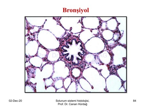 Bronşiyol Prof. Dr. Canan HURDAG 02-Dec-20 Solunum sistemi histolojisi, 84 Prof. Dr. Canan Hürdağ