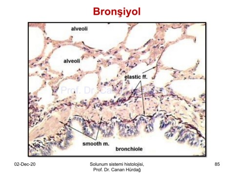 Bronşiyol Prof. Dr. Canan HURDAG 02-Dec-20 Solunum sistemi histolojisi, 85 Prof. Dr. Canan Hürdağ