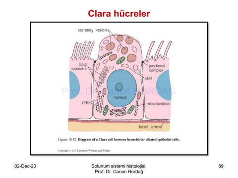 Clara hücreler Prof. Dr. Canan HURDAG 02-Dec-20 Solunum sistemi histolojisi, 89 Prof. Dr. Canan Hürdağ