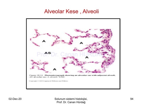 Alveolar Kese , Alveoli Prof. Dr. Canan HURDAG 02-Dec-20 Solunum sistemi histolojisi, 94 Prof. Dr. Canan Hürdağ
