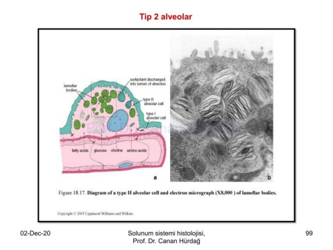 Tip 2 alveolar Prof. Dr. Canan HURDAG 02-Dec-20 Solunum sistemi histolojisi, 99 Prof. Dr. Canan Hürdağ