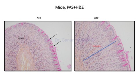 Mide, PAS+H&E X10 X20 L,propria Prof. Dr. Canan HURDAG Mide bezleri